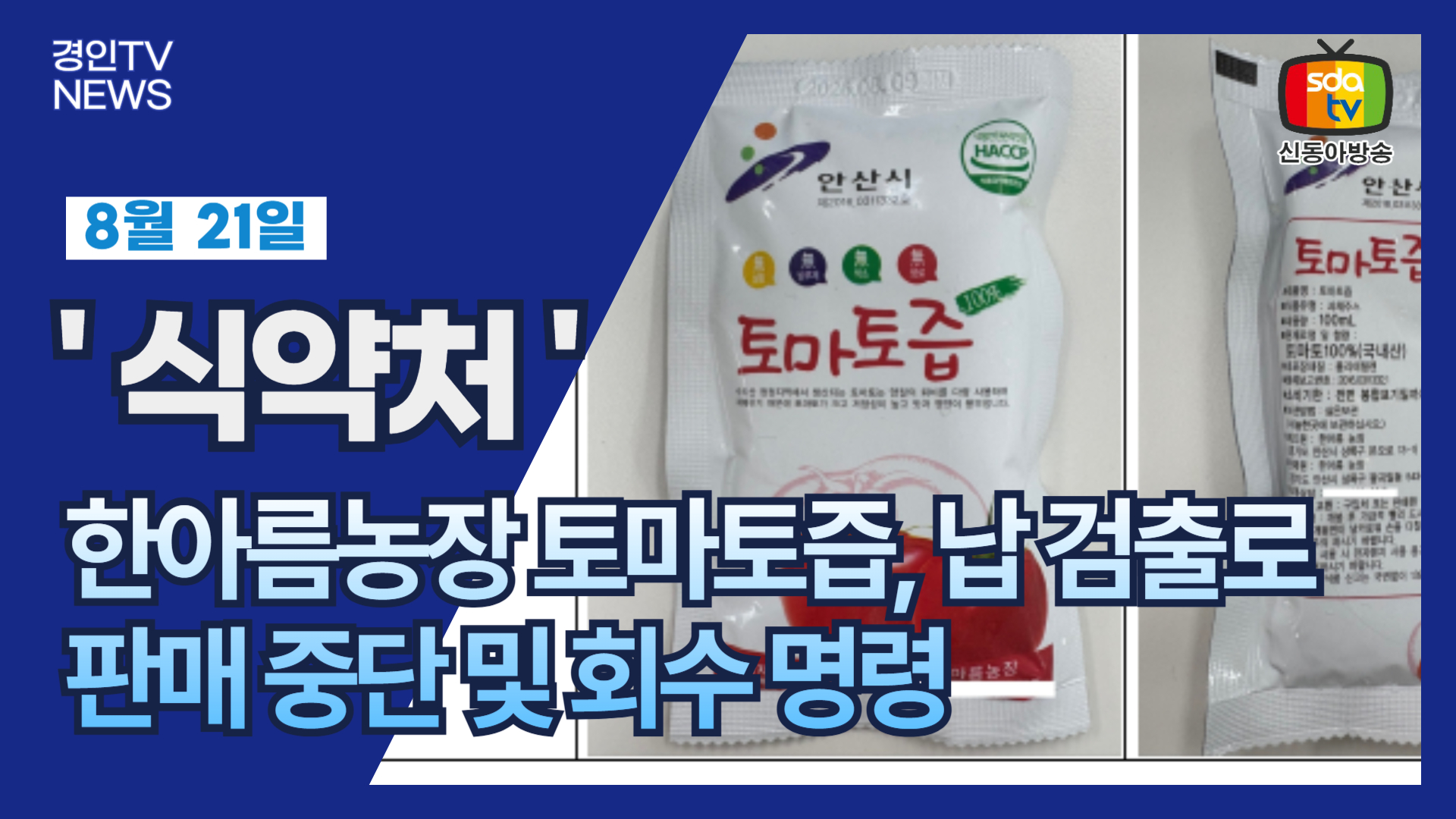 #신동아방송 #박대영 #토마토즙 #납검출 #식품안전 #한아름농장 #식약처 #과채주스 #식품회수 #식품리콜 #식품주의보 #건강안전 #소비자안전 #식품관리 #식품유통 #식품점검 #중금속검출 #납초과 #식품법규 #안산시청 #식품위생 #식품안전강화 #불량식품 #식품위기 #식품사건 #소비자주의 #제품회수 #판매중단 #납기준치초과 #식품안전관리 #안전먹거리 #먹거리주의보 #식품사고 #식품보건 #식품조사 #식품규제 #소비자권익 #식품법위반 #식품리콜사례 #건강리스크 #위험식품 #납검출사건 #안산제조업체 #식품검사 #리콜조치 #위해식품 #식품리스크관리 #식품뉴스 #소비자보호