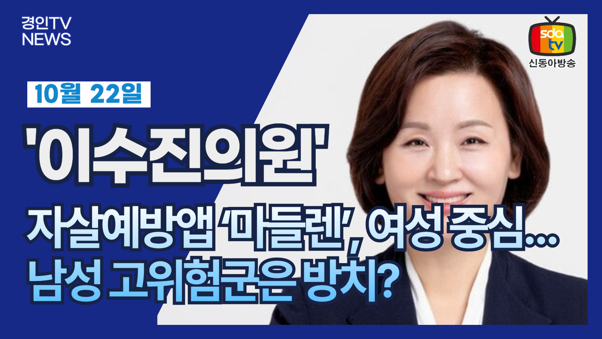 #신동아방송 #박대영 #마들렌 #자살예방 #정신건강 #이수진의원 #청년멘탈 #생명존중 #심리지원 #상담인력 #감정노동 #보건복지부 #정신복지정책 #생명지킴이 #마음건강 #멘탈케어 #자살예방앱 #남성자살률 #여성중심앱 #상담사복지 #예산삭감 #심리지원예산 #복지정책 #정신건강정책 #청년정책 #위기관리 #생명안전망 #정책브리핑 #공익보도 #국회보도 #정책이슈 #정신건강관리 #마음돌봄 #공공보건 #복지예산 #공익뉴스 #상담플랫폼 #위기예방 #마음챙김 #정신건강위기 #사회복지정책 #공공상담 #복지혁신 #사회이슈 #마음의치료 #생명살리기 #사회안전망 #국민건강 #신동아뉴스 #멘탈헬스