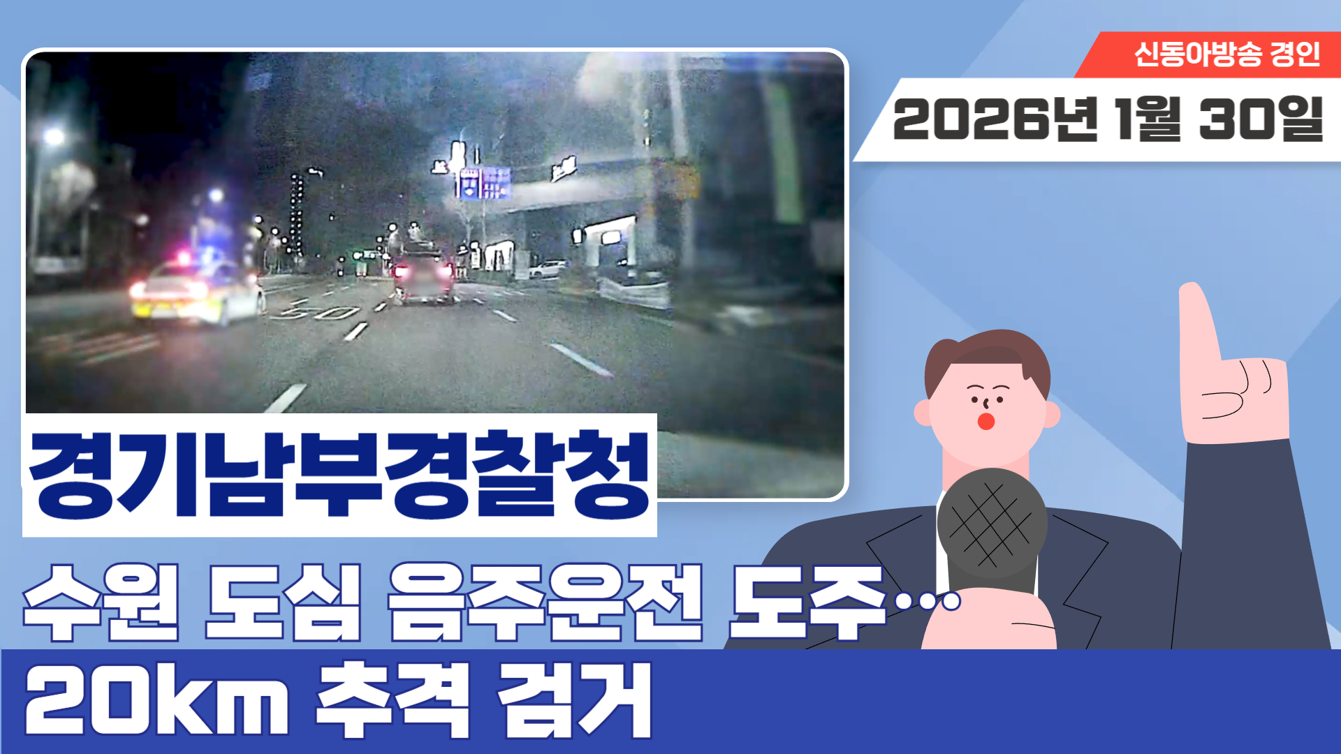 - “수원 도심 질주…음주 의심 차량 20km 추격 끝 검거”